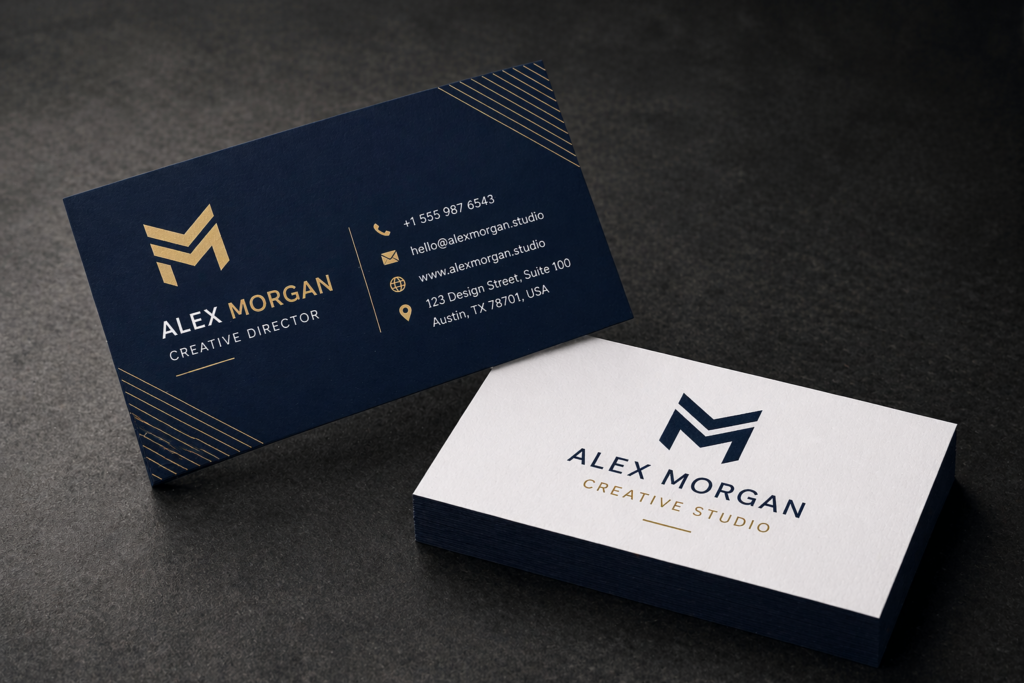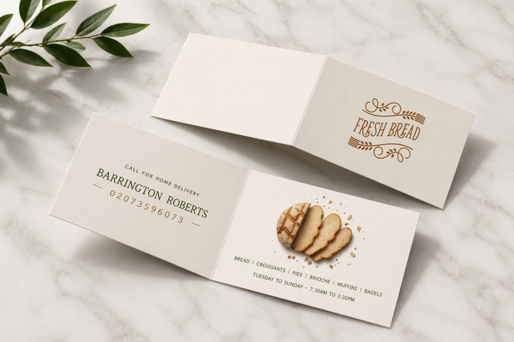 Folded business cards provide extra space for more information, making them ideal for restaurants, hotels, and corporate businesses. They allow you to include product details, service listings, or QR codes while maintaining a clean and elegant presentation combining functionality and branding effectively.