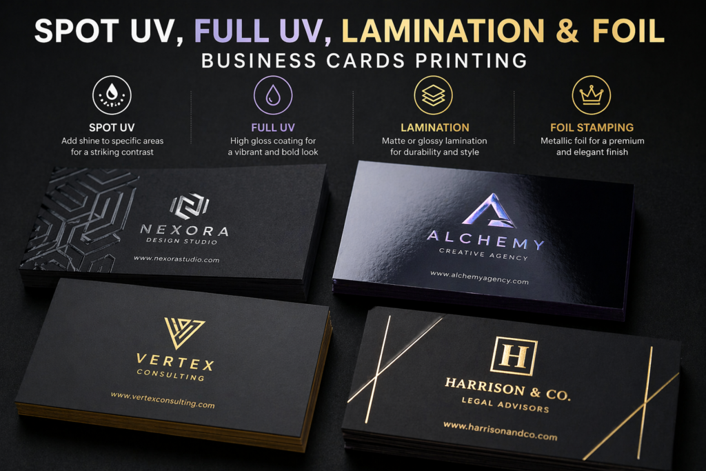 Spot UV, Full UV, Lamination & Foil Business Cards