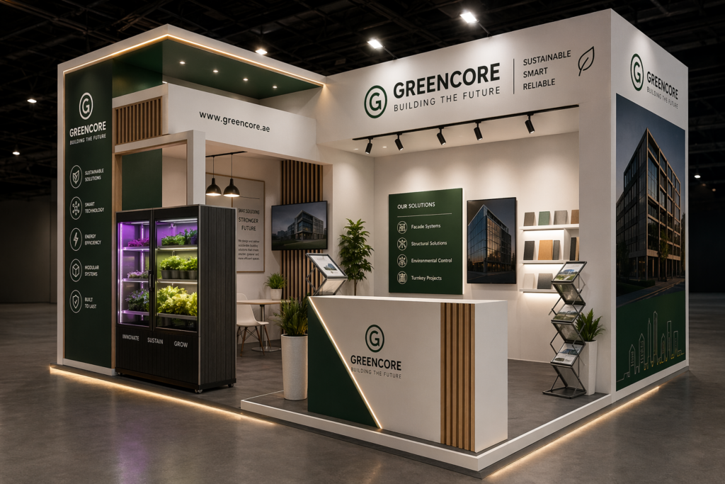 We offer stand design, fabrication, branding, AV solutions, on-site installation, dismantling, and complete event management across Dubai and UAE.